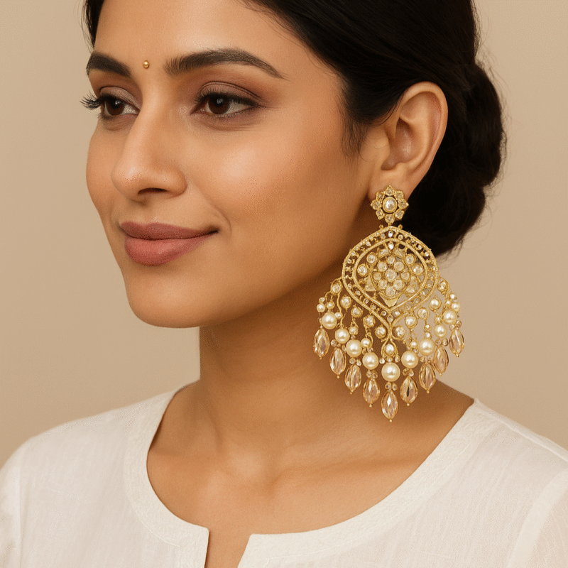 Whether paired with a lehenga, saree, or festive gown, these earrings add instant sophistication and grace to your look. Ideal for weddings, sangeet, festive occasions, or as a thoughtful gift for someone special.