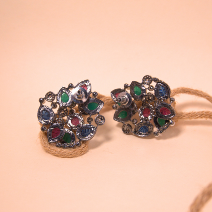 Add a pop of festive color and timeless charm to your jewellery collection with the Multi-Color Handcrafted Traditional Earrings from All That Glitters. These earrings are a celebration of Indian artistry, blending a lively palette of hand-set stones with classic motifs for a truly eye-catching accessory.