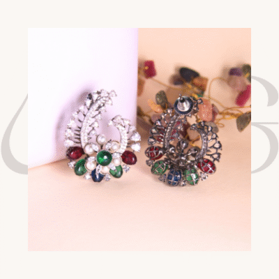 These zircon earrings combined with coloured stones and pearls give mesmerizing appeal. Perfect for elevating any look they add a touch of elegance and can be carried at any occasion